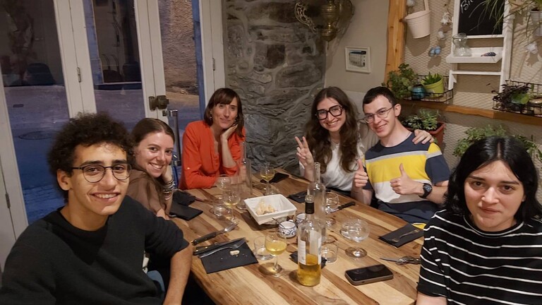 📾 Les jeunes bĂ©nĂ©voles du festival Ă  table, chez Christine Sanchette, rue du Bourguet, Laruns.