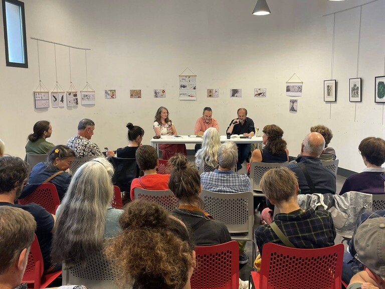 Enfin, Alexis JENNI et Gabrielle FILTEAU CHIBA se sont entretenus sur les relations humains-arbres, en prenant appui sur leurs ouvrages respectifs rĂ©cents, Parmi les arbres (Actes Sud, 2024) et La Forêt barbelée (Castor Astral, 2024), en offrant quelques temps de lectures publiques de leurs textes.
