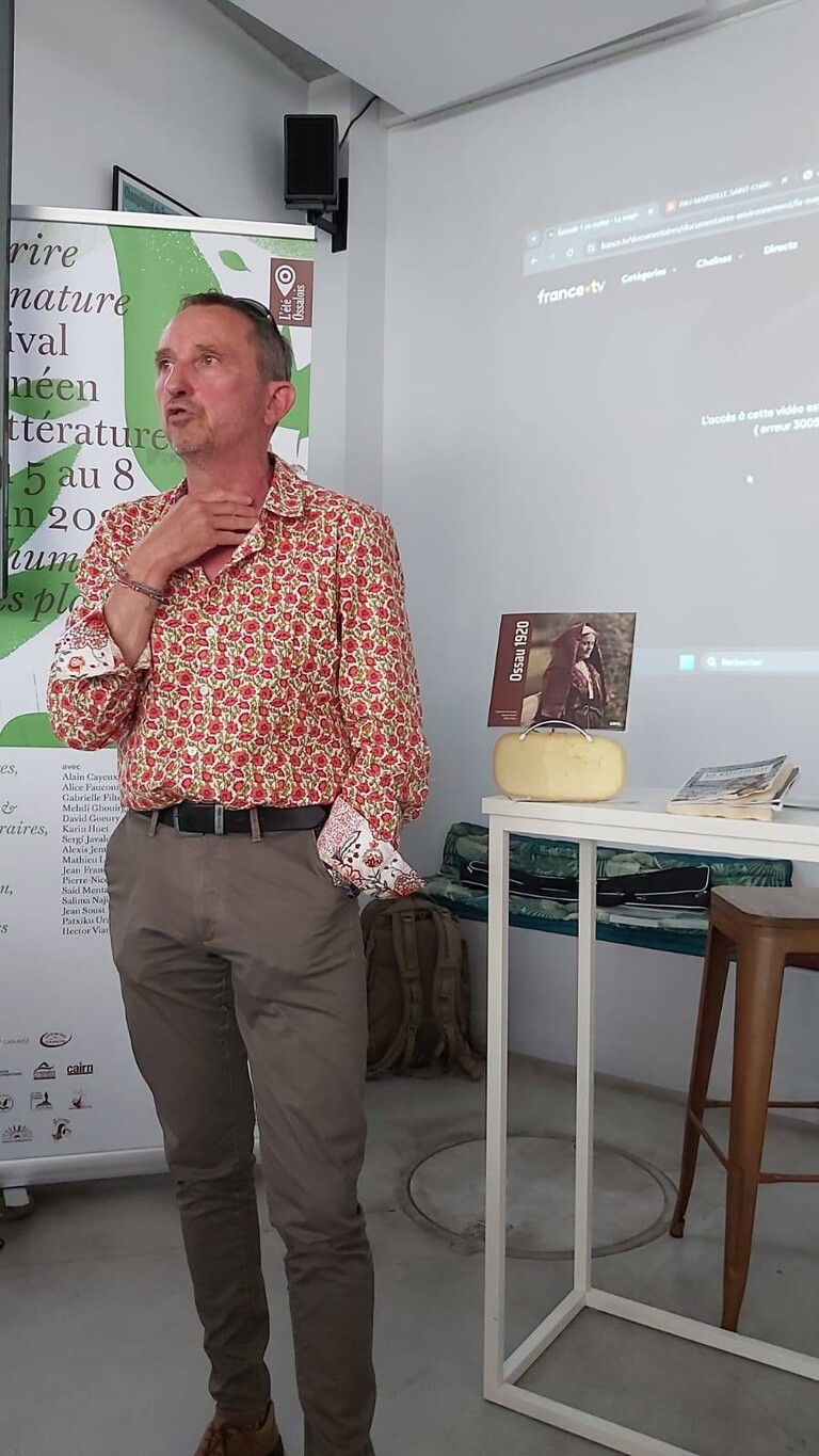 *Courte présentation du livre et de l'auteur (rappel de sa venue en 2022 pour sa biographie de John Muir) par le président d'Ecrire la Nature* et d'un autre ouvrage dans la champ de l'écopoétique publié récemment avec le concours de nos ôtes occitanistes de l'OPLO; *La chélidoine. Des plantes, des femmes et des hommes en Gascogne* et ailleurs par Jacolet Abadie, éditions du Clab, 2025 (crédit photo ELN 2025)