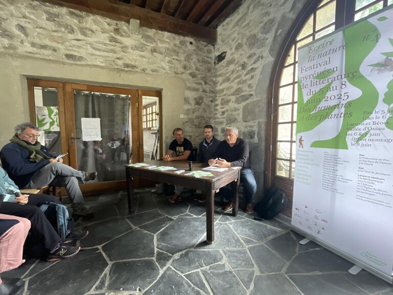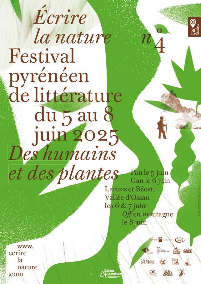 Du 5 au 8 juin 2025 s’est tenue la quatriĂšme Ă©dition du festival “Écrire la Nature”, sur les sites de La Ciutat, Ă  Pau, puis Laruns et BĂ©ost, aprĂšs un passage par la cave de Jurançon Ă  Gan. Conçu en 2020 (rĂ©daction du projet), créé en 2021 (pour l’association), et lancĂ© en 2022 (1ere Ă©dition) par CĂ©dric Baylocq Sassoubre avec l’appui de la mairie de Laruns, Olivier Lafaye, Françoise Besson et une petite équipe de bénévoles qui s'est dĂ©veloppĂ©e d'une annĂ©e sur l'autre, le festival annuel est portĂ© par l’association Ă©ponyme « Écrire la Nature. Festival PyrĂ©nĂ©en de littĂ©rature ». Sa figure tutĂ©laire est le grand naturaliste américain John MUIR, inspirateur des « parcs nationaux » et pionnier du nature writing, champ littĂ©raire centrĂ©, comme son nom l’indique sur la nature sous toutes ses formes, et sa dĂ©fense par le biais de rĂ©cits, fictions ou essais. Chaque annĂ©e, un thĂšme gĂ©nĂ©ral (non exclusif) permet la mise en place d'activitĂ©s et de confĂ©rences : aprĂšs s’ĂȘtre centrĂ©e sur l’eau (« De nos gaves aux ocĂ©ans ») en 2024, l’association a choisi cette annĂ©e le thĂšme “Des humains et des plantes”.