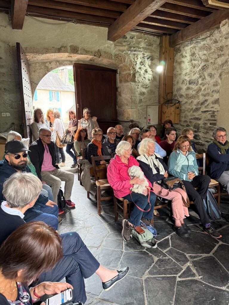 Comme l’an dernier, la suite de la journĂ©e s’est dĂ©roulĂ©e Ă  l’église mĂ©diĂ©vale de BĂ©ost, qui jouxte le gĂźte. Dix auteurs ont choisi et lu un extrait de leur ouvrage, devant une assemblĂ©e passionnĂ©e et trĂšs nombreuse. Les interludes ont Ă©tĂ© assurĂ©s par les compositions originales et les rĂ©cits du musicien multi-instrumentiste Jean-Luc MONGAUGÉ, artiste ossalois, conseiller municipal Ă  la mairie de Laruns et soutien du festival depuis ses dĂ©buts en 2022.