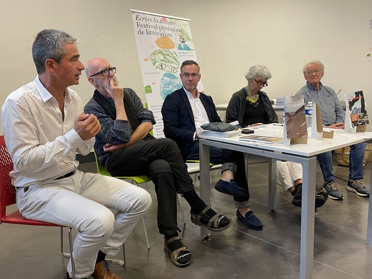 Passionné des Pyrénées, Jean Cazaban est présenté ainsi par son éditrice : « Montagnard accompli, il est en quête d’absolu : admirer un paysage, sentir le vent, écouter le silence, être libre ». En écoutant Jean Cazaban ce 2 juin 2023, lors de la table ronde au cours de laquelle il parlait de son livre Au-delà des horizons. Atlantique-Méditerranée, Haute Route Pyrénéenne - 30 jours (MonHélios, 2020), on pouvait avec lui et dans ses mots « sentir le vent, écouter le silence, être libre » (4ème de couverture). 770 km parcourus en 30 jours, 43 615 mètres de dénivelé cumulé. Mais ce n’est pas d’exploit sportif qu’il est question. C’est d’une communion avec la montagne, d’une connexion avec chaque élément et chaque être de ces Pyrénées qu’il a parcourues d’ouest en est avec amour : pour les sentir, les voir, les écouter. Il en a fait un livre, non prévu au départ comme il le dit dans une interview sur Fréquence Luz lors de la présentation de son livre à à la librairie Plume d'Esquièze-Sère : « 756 km, 44015 m de dénivelé, 230 h de marche, une moyenne quotidienne de 26 km/jour pour une moyenne quotidienne de 1518 m de dénivelé... Et pourtant nulle notion d'exploit. Juste une découverte des Pyrénées d'ouest en est, sublimées par le montagnard qui vit un moment unique » [ https://www.frequenceluz.com/plus-est-fous-plus-lit/dela-horizons-jean-cazaban]. «Un mot par mètre de dénivelé », dit-il. Quelle plus belle façon d’allier écriture et montagne ?