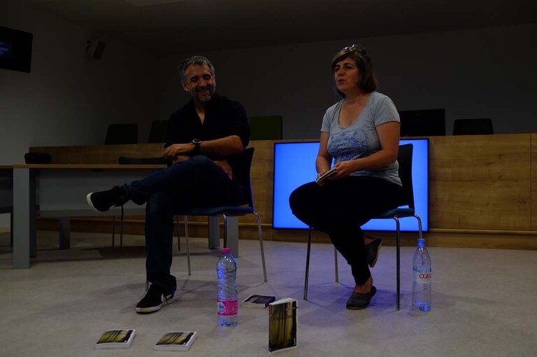 « Presqu’îles » est aussi addictif qu’une bonne série. Vous commencez par lire une nouvelle, puis une autre, et encore une autre…Vous avez beau vous dire : « Allez, c’est la dernière, je reprendrai demain ! ». Trop tard ! Vous allez jusqu’au bout » salue Marianne Lassus, secrétaire générale du Festival, libraire à Arudy et animatrice de la rencontre.